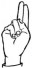 На ћирилици написано ЛЕНА КРСМАНИЋ састоји се из 12 слова [?]. Исписано ћириличном једноручном азбуком за глувонеме:
